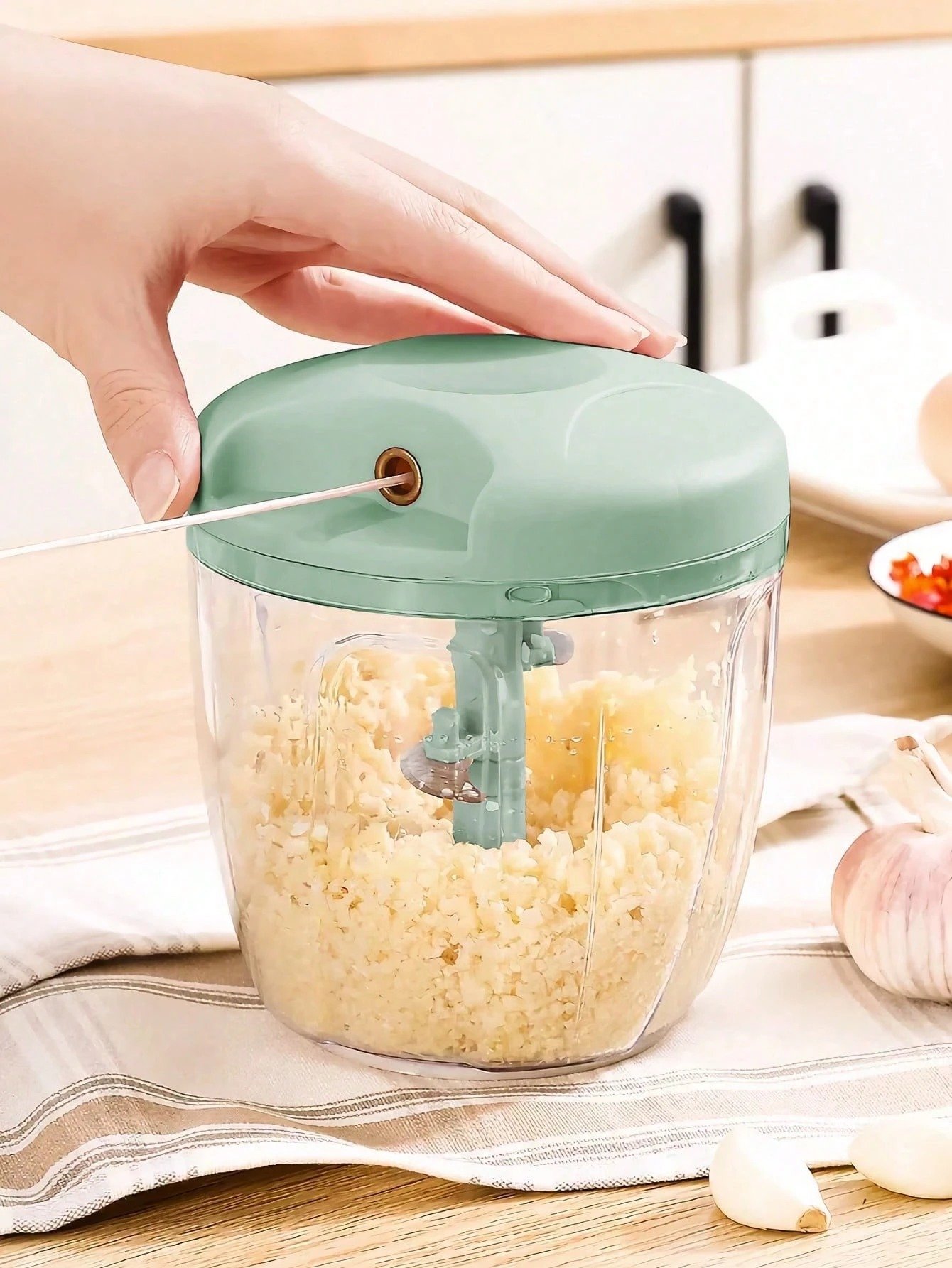 Buy 5-blade manual garlic press with 900ml capacity and 500ml grinder. Multi-function kitchen tool for garlic paste, vegetables, and meat. Durable, easy to use, and stylish pink kitchen accessory.