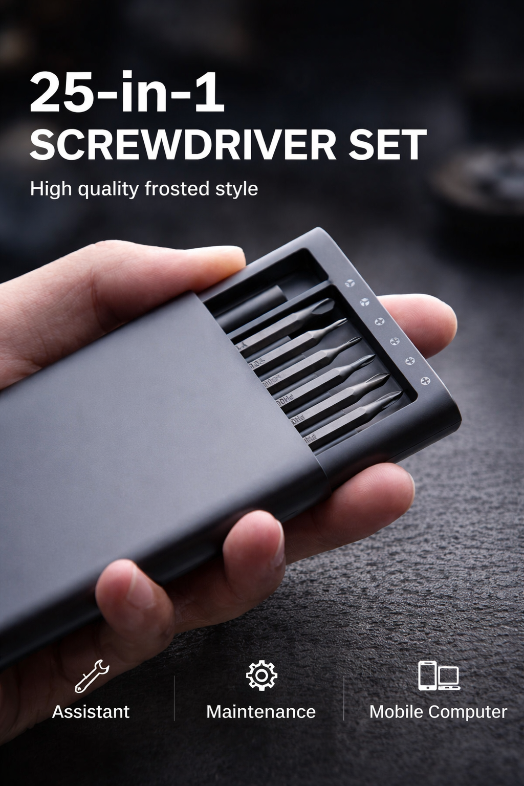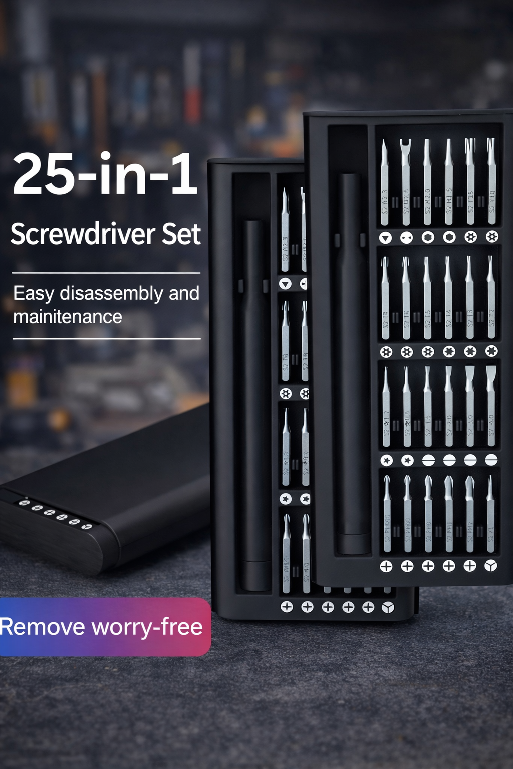 This 25-in-1 precision screwdriver set is designed for repairing phones, tablets, laptops, and small electronics. Compact, durable, and easy to use, it is the perfect tool kit for both professionals and everyday use.
